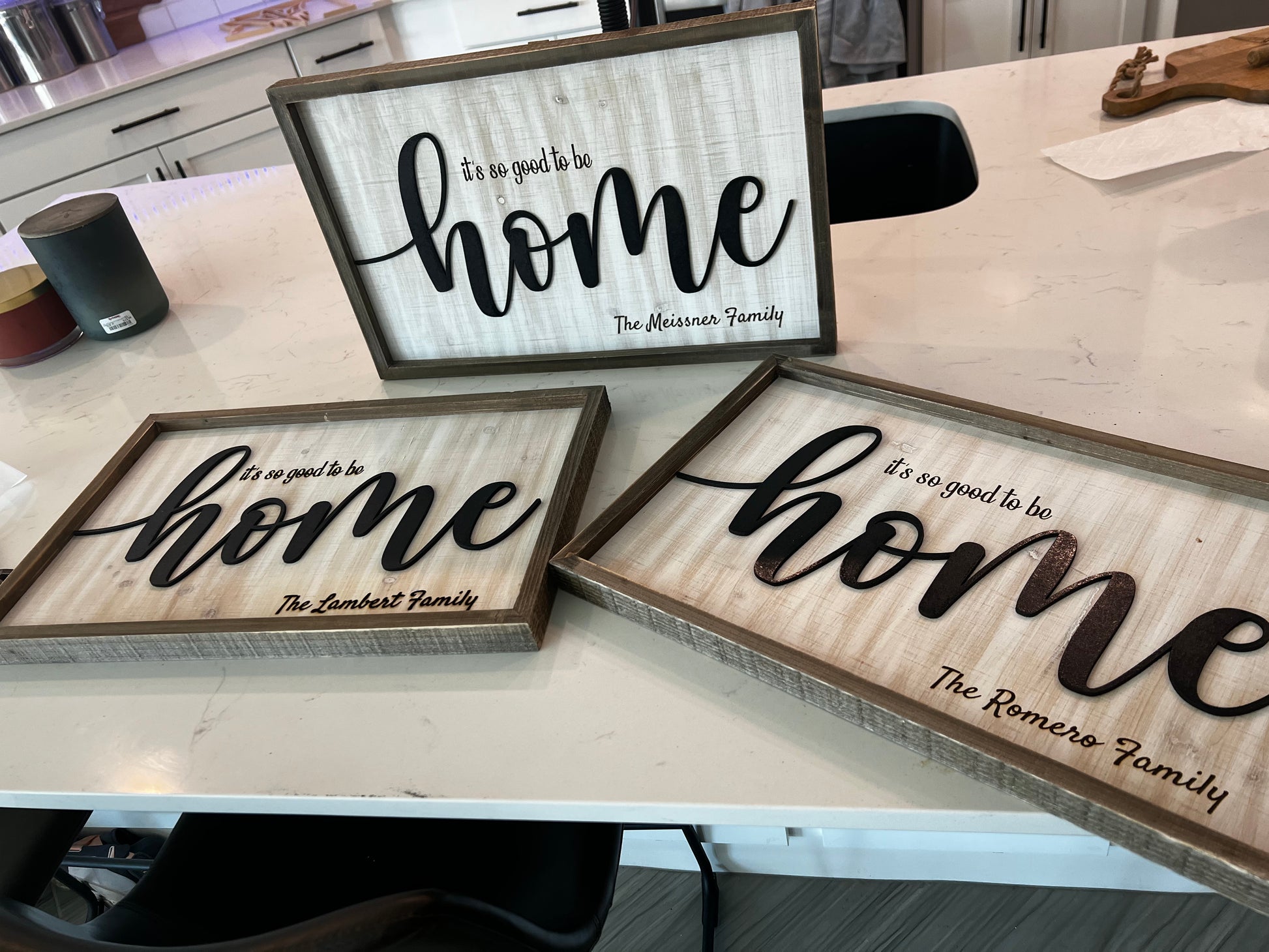 "It's so good to be home" with family name
