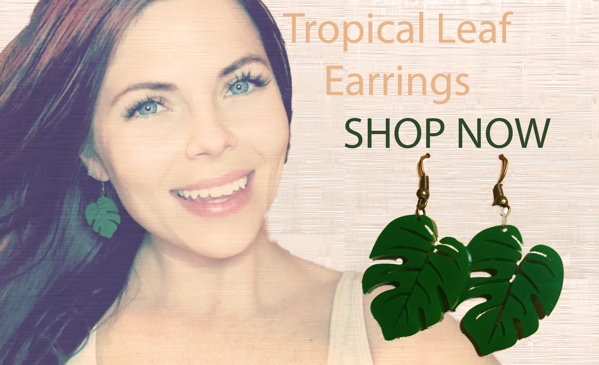 These acrylic laser cut earrings are a great addition to any outfit! The cutest tropical leaf earrings are made of green acrylic and engraved to show detail and look realistic. Because of the dark green acrylic, the color will never fade.
